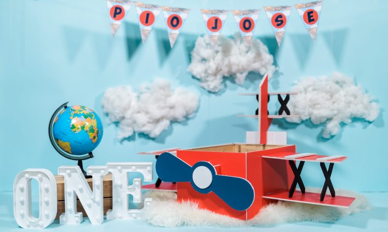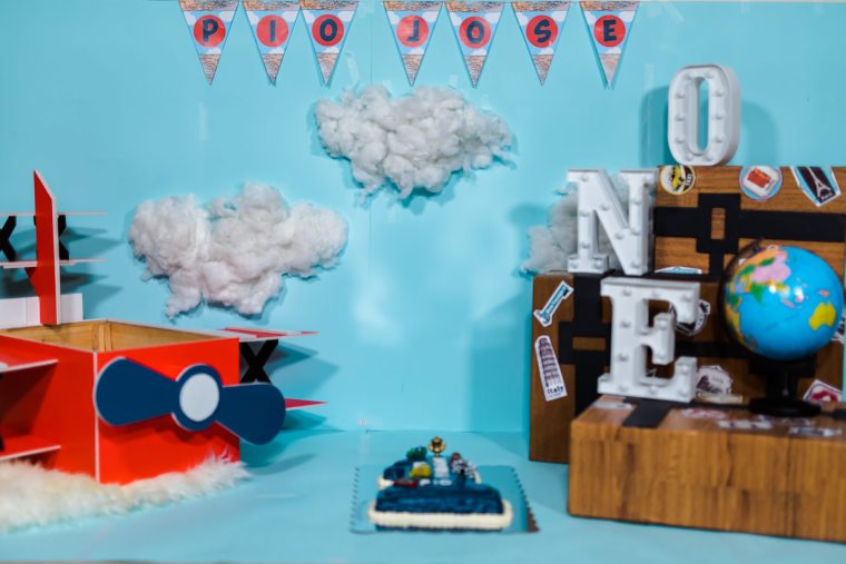 Initially, we wanted to do it outdoors as the theme that I chose for his party was vintage travel. But it was summer and the temperature in Doha that time was too much to handle, so we decided to do it at home.