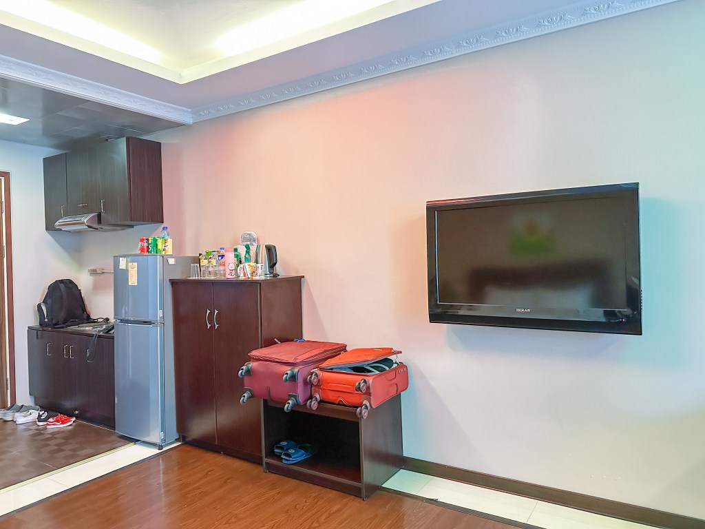 There’s a mini kitchen with an electric stove, refrigerator and electric kettle. Mini bar was also present, though you need to pay of course in case you will consume any of it. Complimentary coffee and water were provided. At the bedside table there’s this old school phone and my kids were so amazed. Our room also got a small balcony, though what you can see are mainly the other hotels nearby. But this is a good place to have a coffee or some drinks.